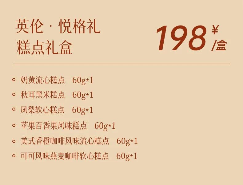 介绍:奶黄流心糕点60g*1 美式香橙咖啡风味流心糕点60g*1 可可风味燕麦咖啡软心糕点60g*1 苹果百香果风味糕点60g*1 凤梨软心糕点60g*1 秋耳黑米糕点60g*1