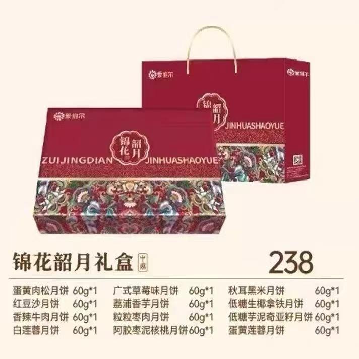 介绍:蛋黄肉松月饼60gx1 广式草莓味月饼 60gx1 秋耳黑米月饼 60gx1 红豆沙月饼 60gx1 荔浦香芋月饼 60gx1 低糖生椰拿铁月饼60gx1 香辣牛肉月饼60gx1 粒粒枣肉月饼 60gx1 芋你奇亚籽月饼60gx1 白莲蓉月饼 60gx1 阿胶核桃枣泥月饼60gx1 蛋黄莲蓉月饼 60gx1