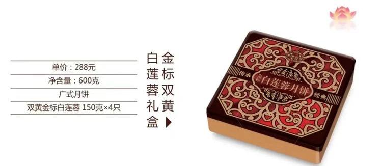 介绍:广式月饼 双黄金标白莲蓉月饼150gx4只