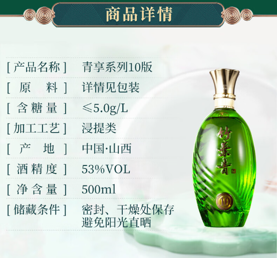 竹叶青酒 山西杏花村 青享10版-53度