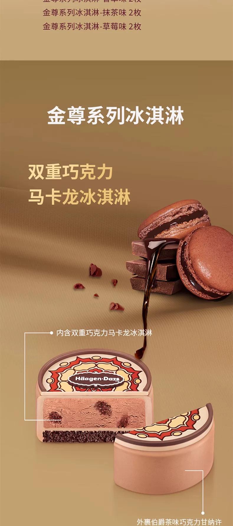 介绍:金尊系列冰淇淋-双重巧克力马卡龙味*2枚 金尊系列冰淇淋-香草味*2枚 金尊系列冰淇淋-抹茶味*2枚 金尊系列冰淇淋-草莓味*2枚