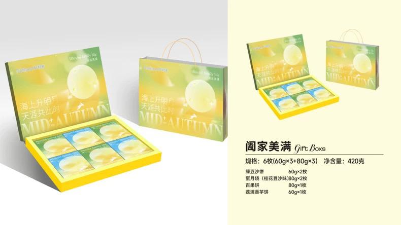 介绍:绿豆沙月饼60克*2 粒粒红豆沙月饼80克*2 百果月饼80克*1 荔浦香芋月饼60克*1
