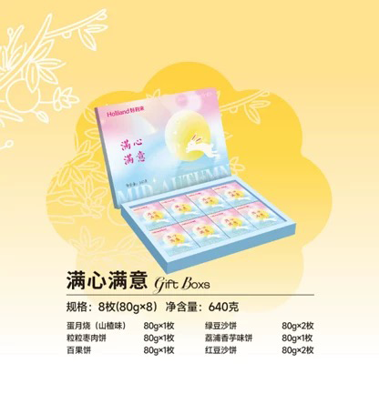 介绍:绿豆沙月饼80g*2粒 粒粒红豆沙月饼80g*2 百果月饼80g*1 醇香粒粒枣肉月饼80g*1 蛋月烧(山楂味)月饼80g*1 荔浦香芋月饼80g*1