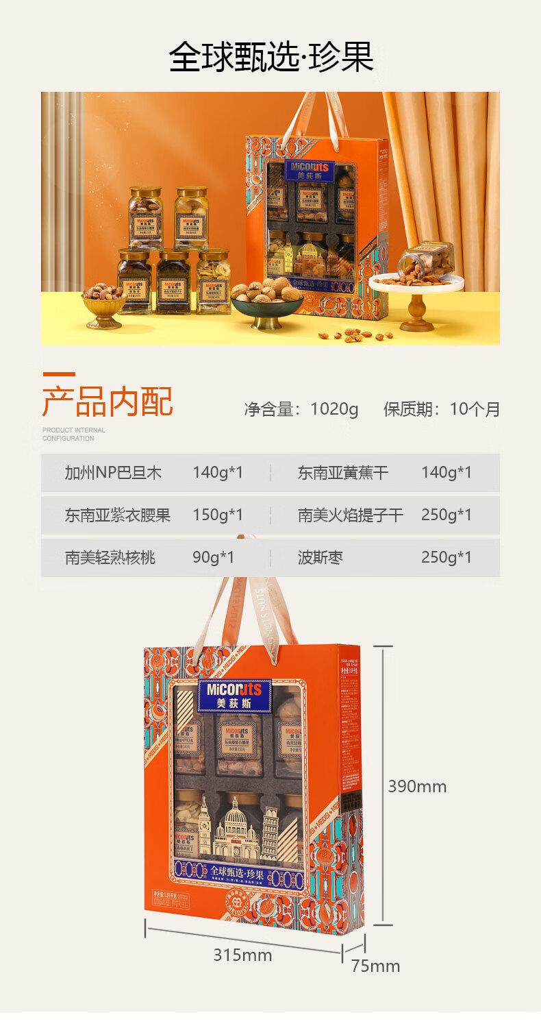介绍:加州NP巴旦木140g*1 东南亚黄蕉干140g*1 东南亚紫衣腰果150g*1 南美火焰提子干 250g*1 南美轻熟核桃90g*1 波斯枣250g*1