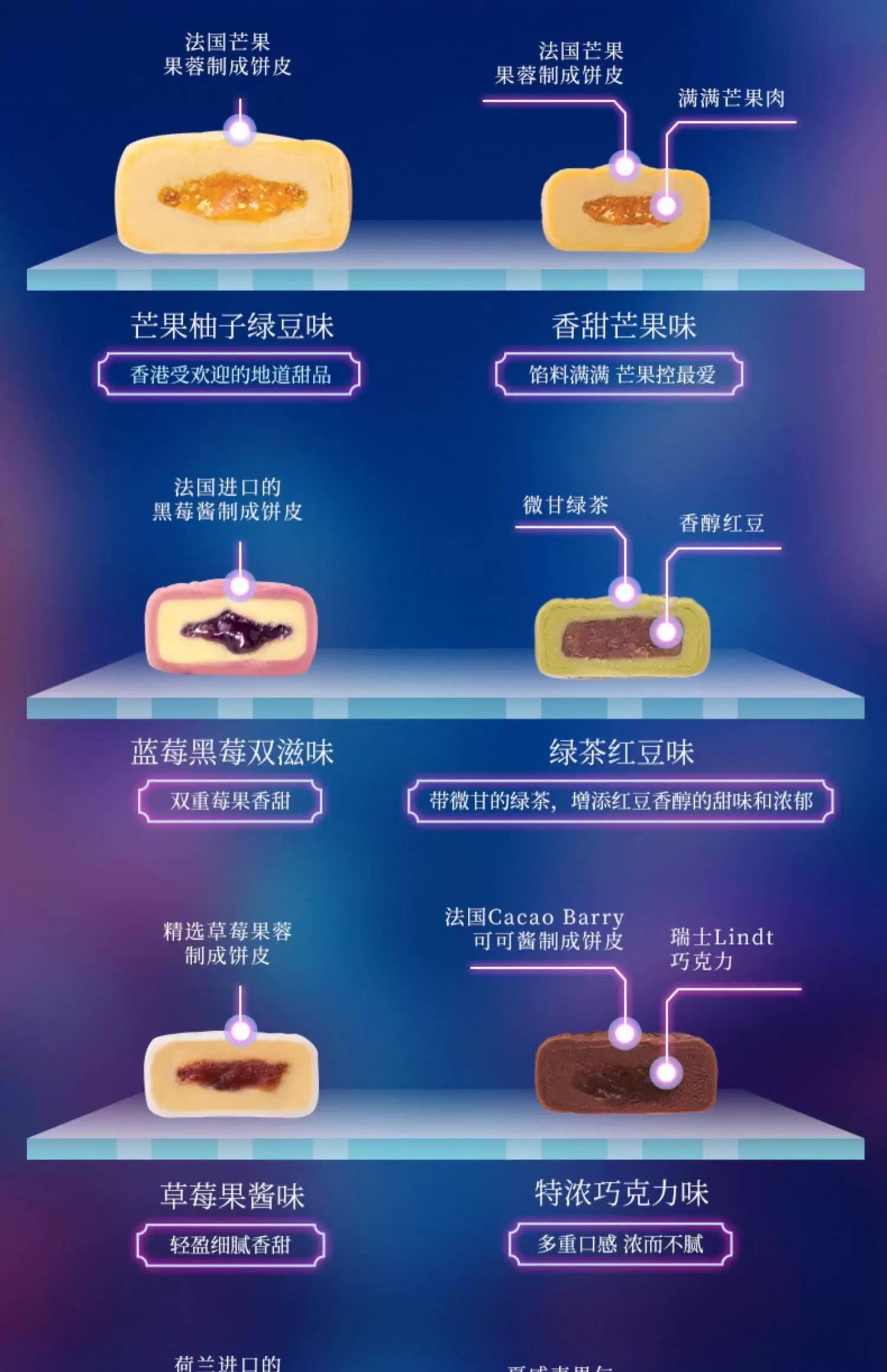 介绍:芒果柚子绿豆味*1 芒果味*1 蓝莓黑莓双滋味*1 绿茶红豆味*1 草莓果酱味*1 特浓巧克力味*1 夏威夷果仁芝麻*1味 粉红番石榴*1 杏肉果酱味*1