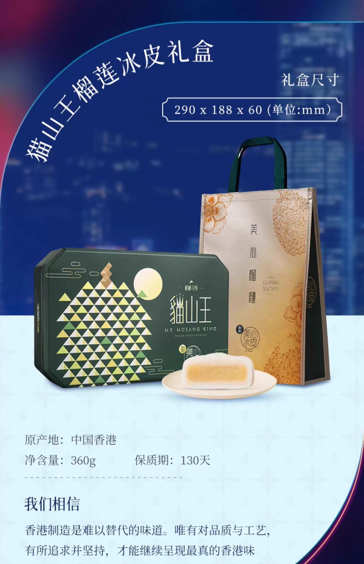 猫山王榴莲冰皮礼盒-338型 --昆山美心月饼_美心月饼团购_昆山美心门店_月饼券-昆山月饼团购_月饼券_年货_阳澄湖大闸蟹_酒水_企业福利礼品_昆山京京团购网