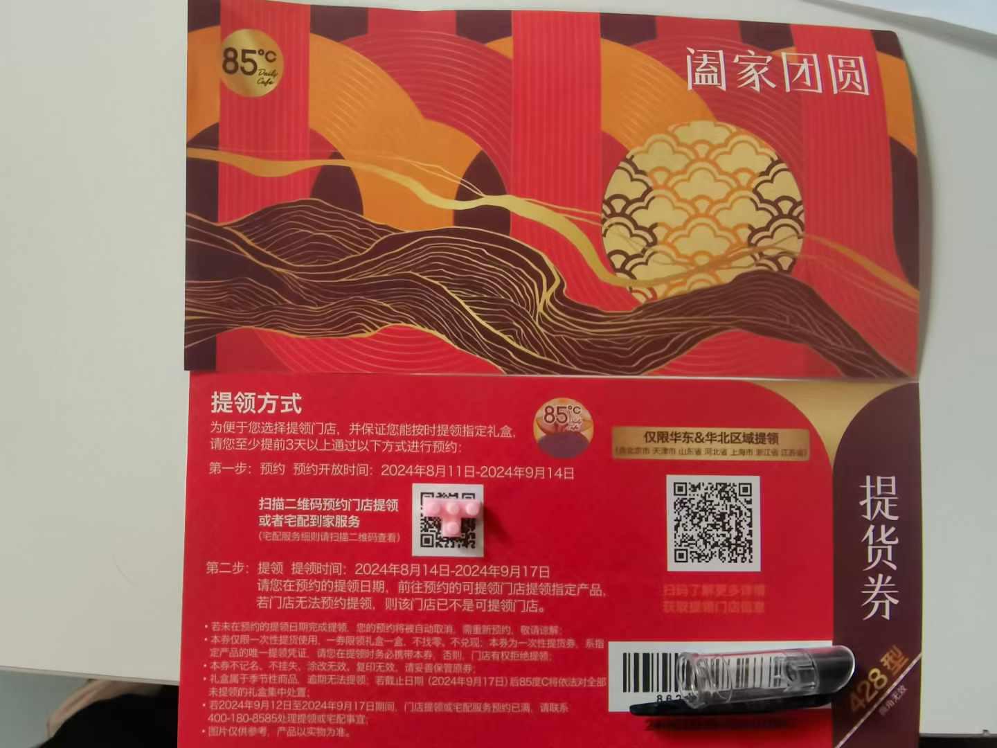 85度C月饼券,设计简约而不失高雅,封面以淡雅的金色为主色调,搭配着中秋元素——如皎洁的明月、飘香的桂花或是温馨的家庭聚餐场景,营造出浓厚的节日氛围。券面上,精致的手绘图案与品牌logo相得益彰,既展现了85度C对于品质的追求,也预示着即将开启的一场味蕾盛宴。